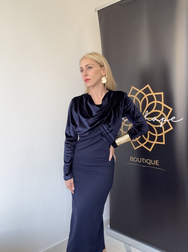 El vestido perfecto para eventos de invierno, combinando elegancia, comodidad y estilo.